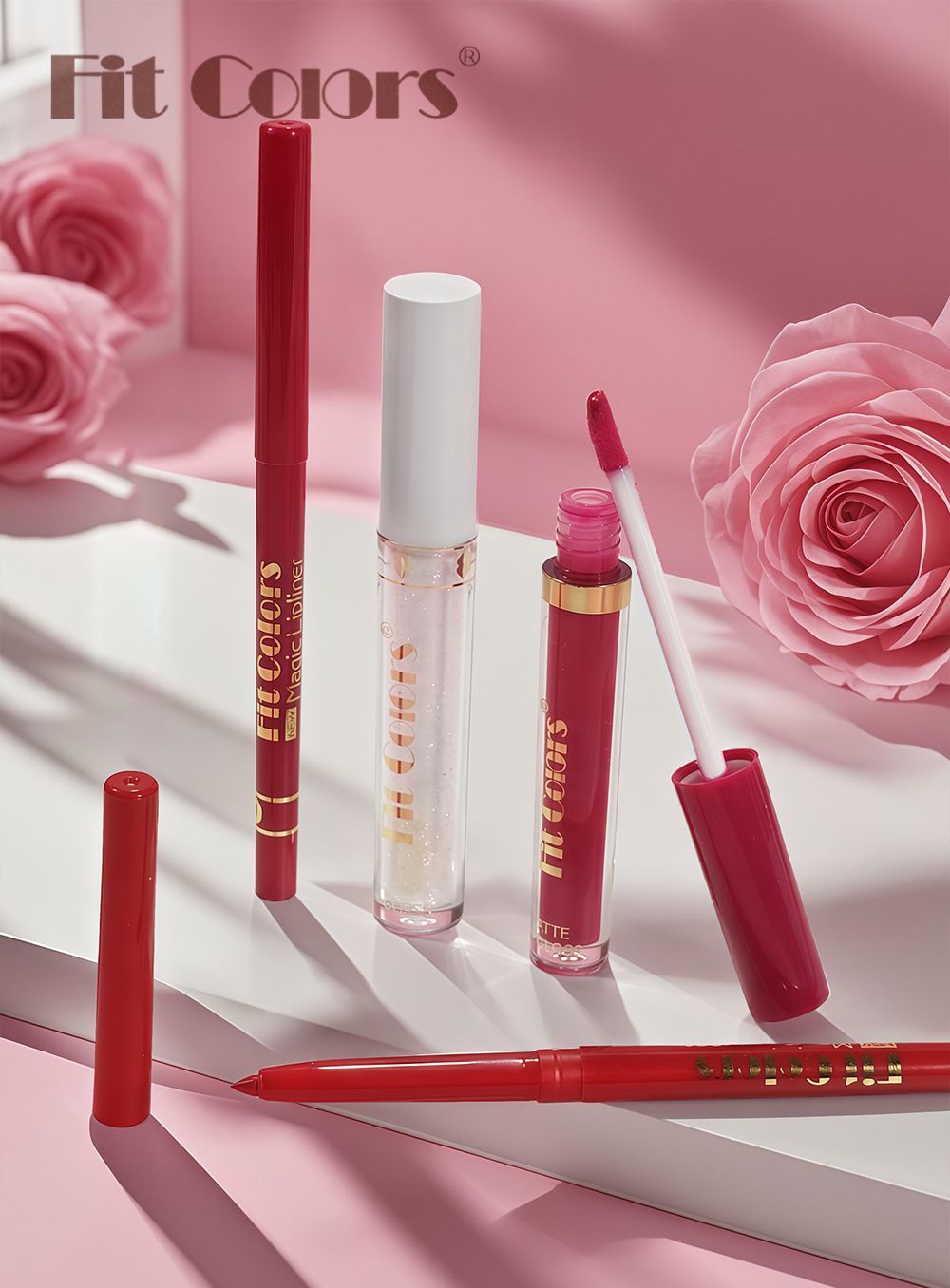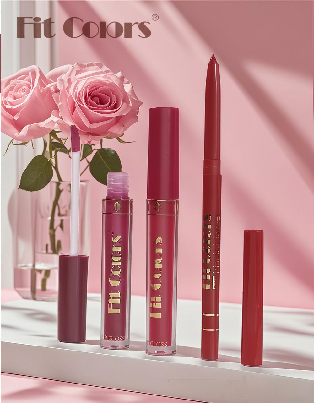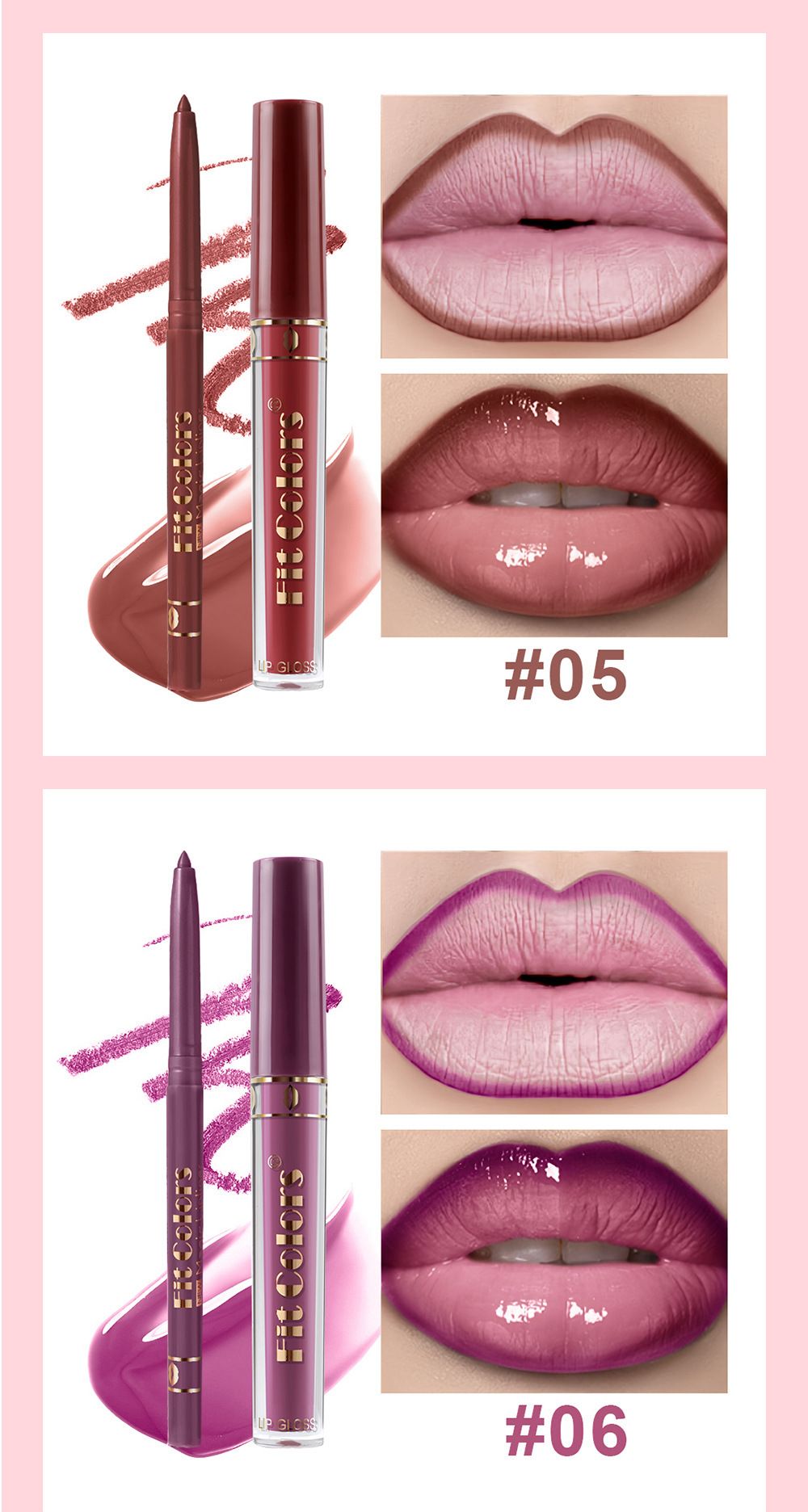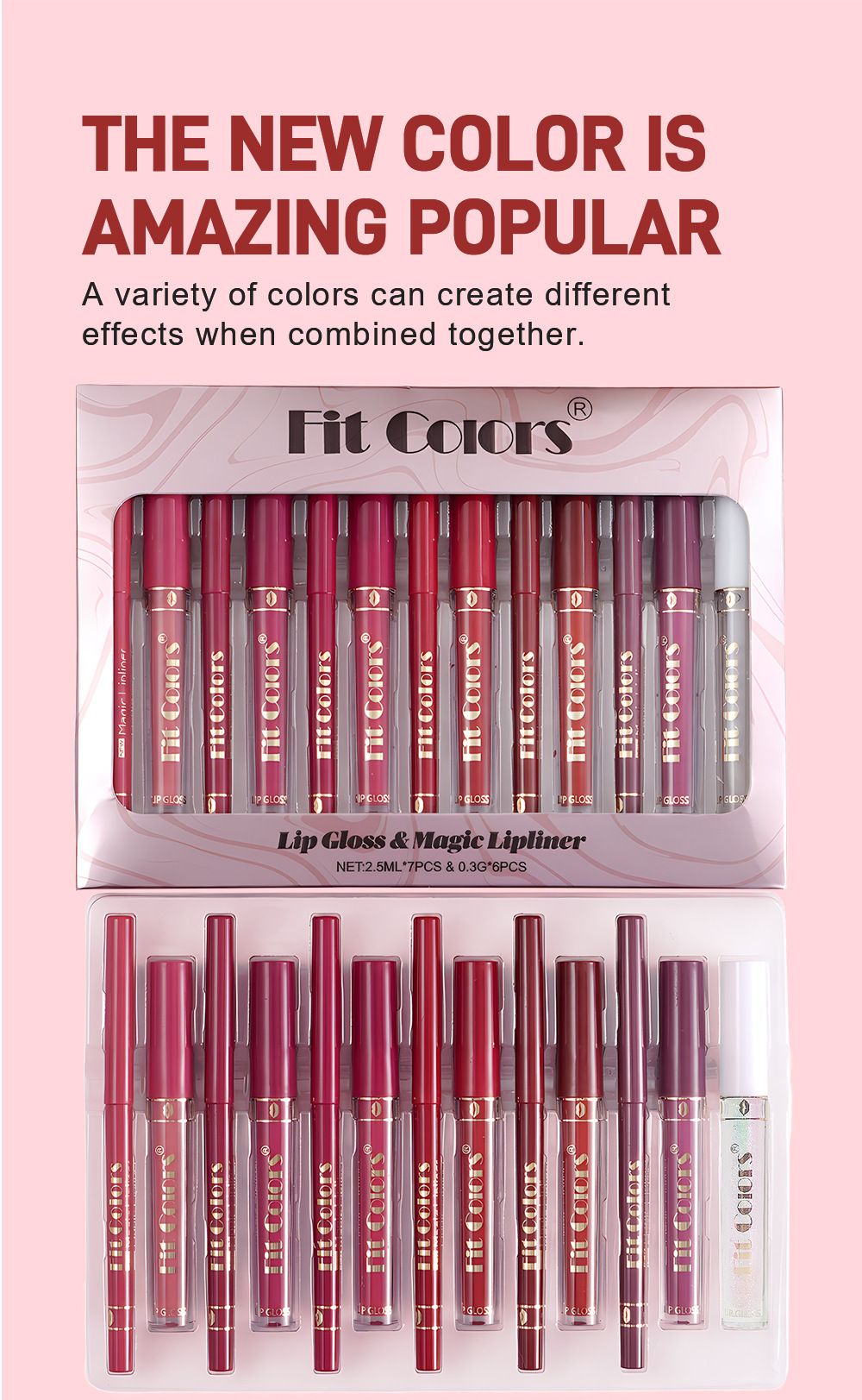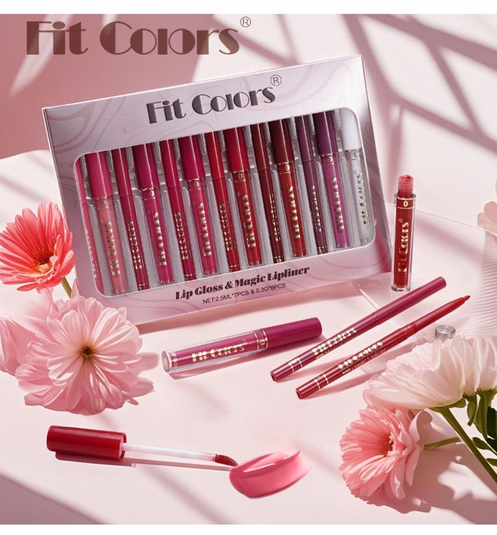Fit Colors 6+7 Lip Gloss and Lip Liner Pencil Set, Matte, Non-Sticky Cup, Lip Contouring Pencil, Non-Fading Lip Glaze