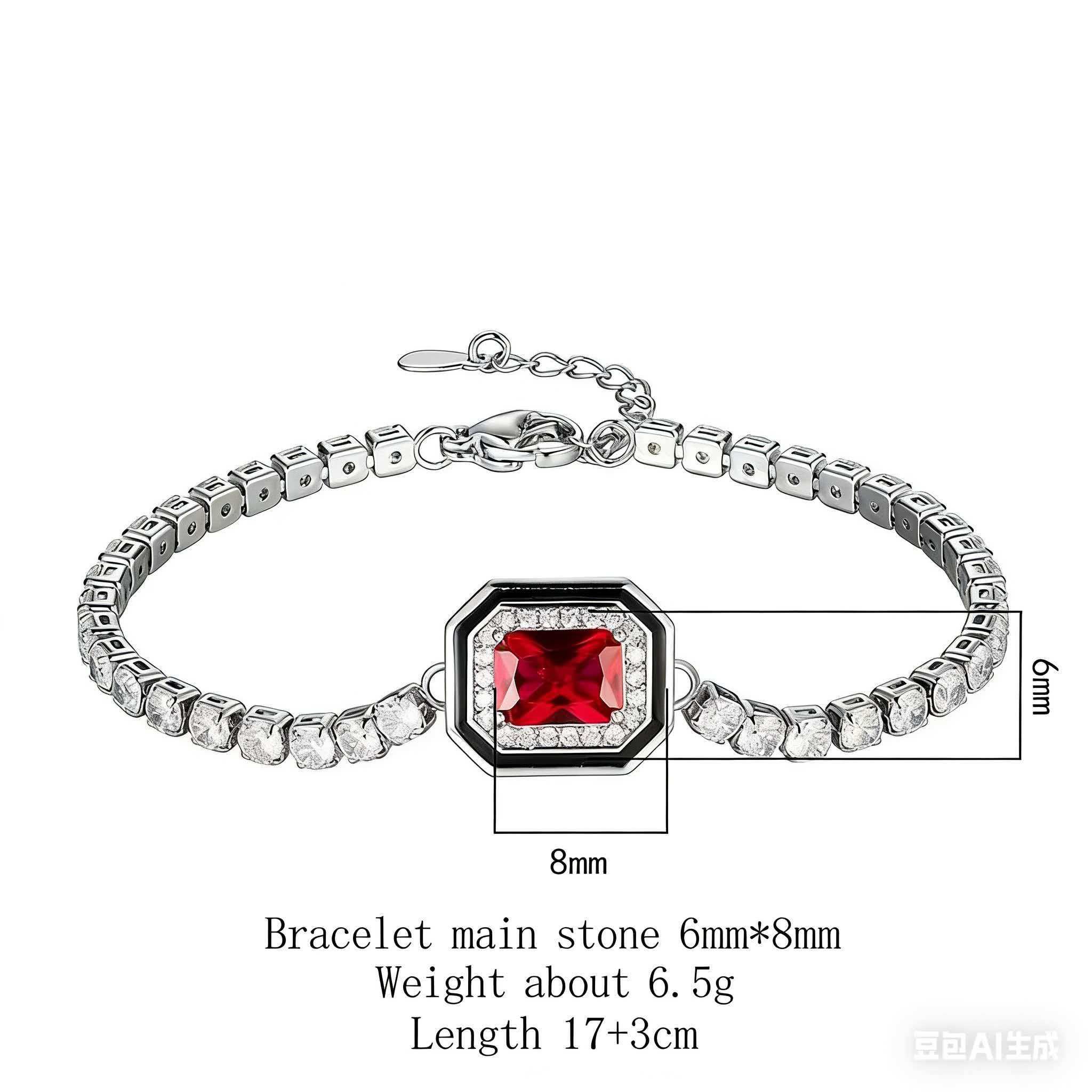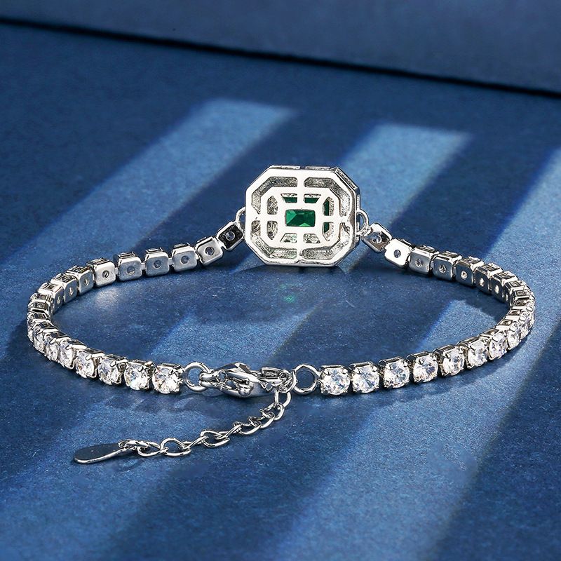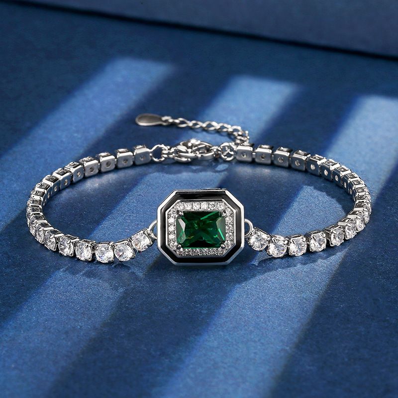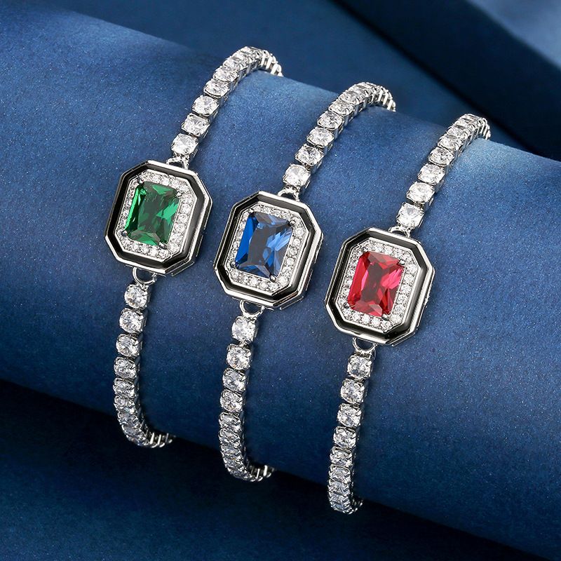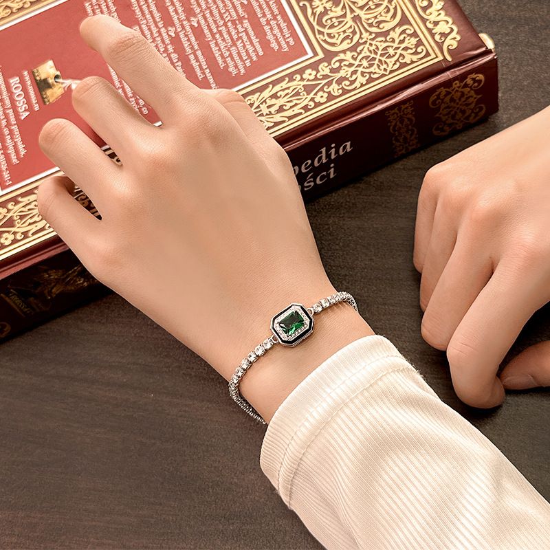 European and American Retro Imitation Colored Gemstone Square Elegant Bracelet Jewelry for Women