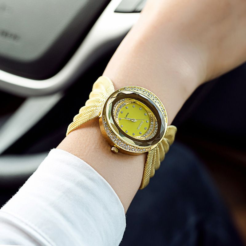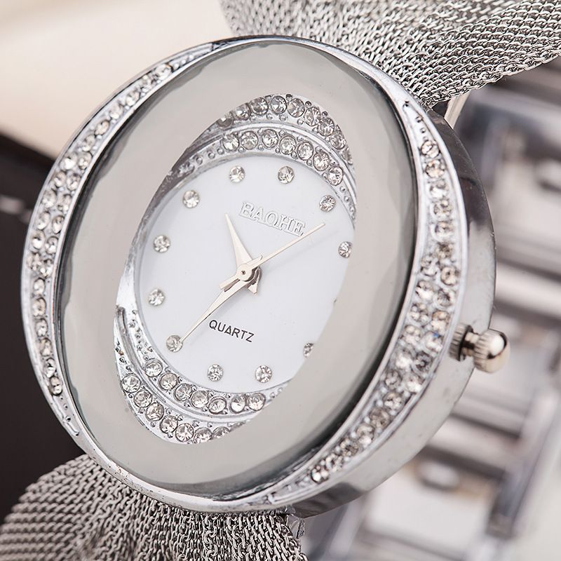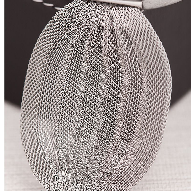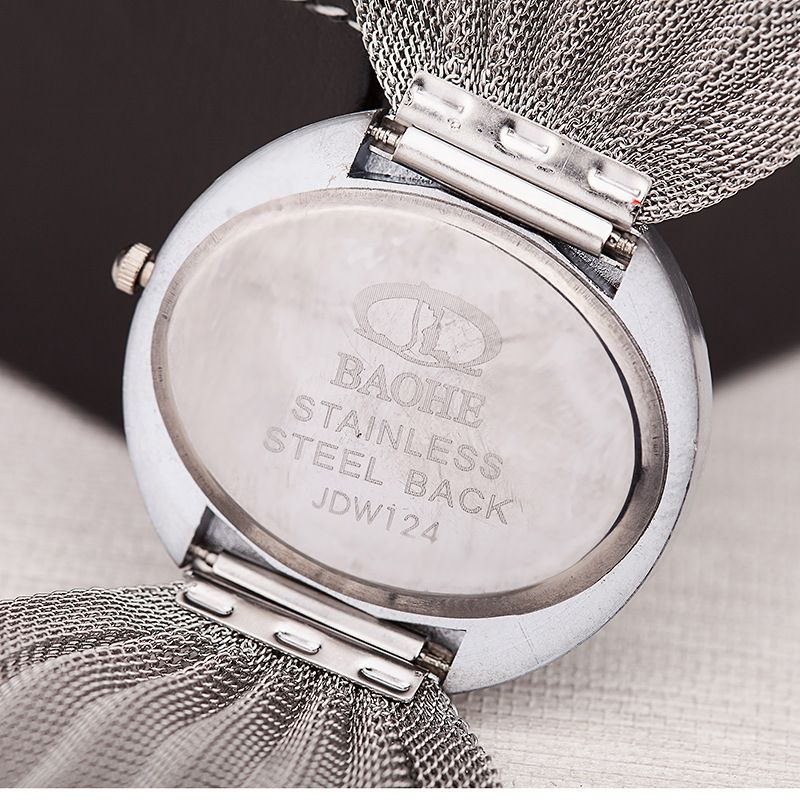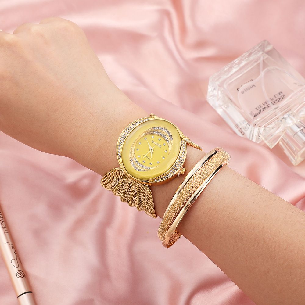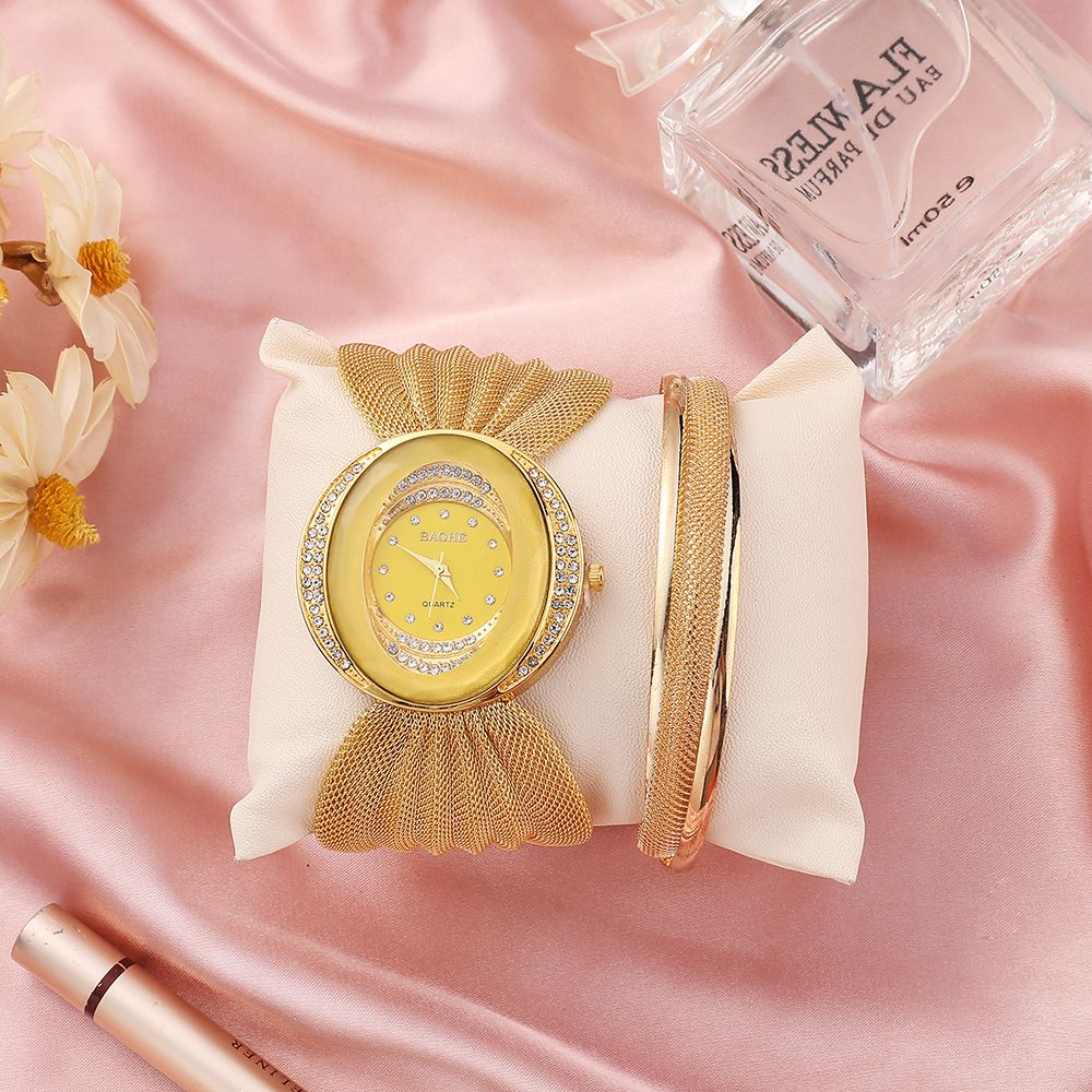 Fashionable new oval mesh strap women's quartz watch 2-piece set, simple alloy bracelet watch gift box