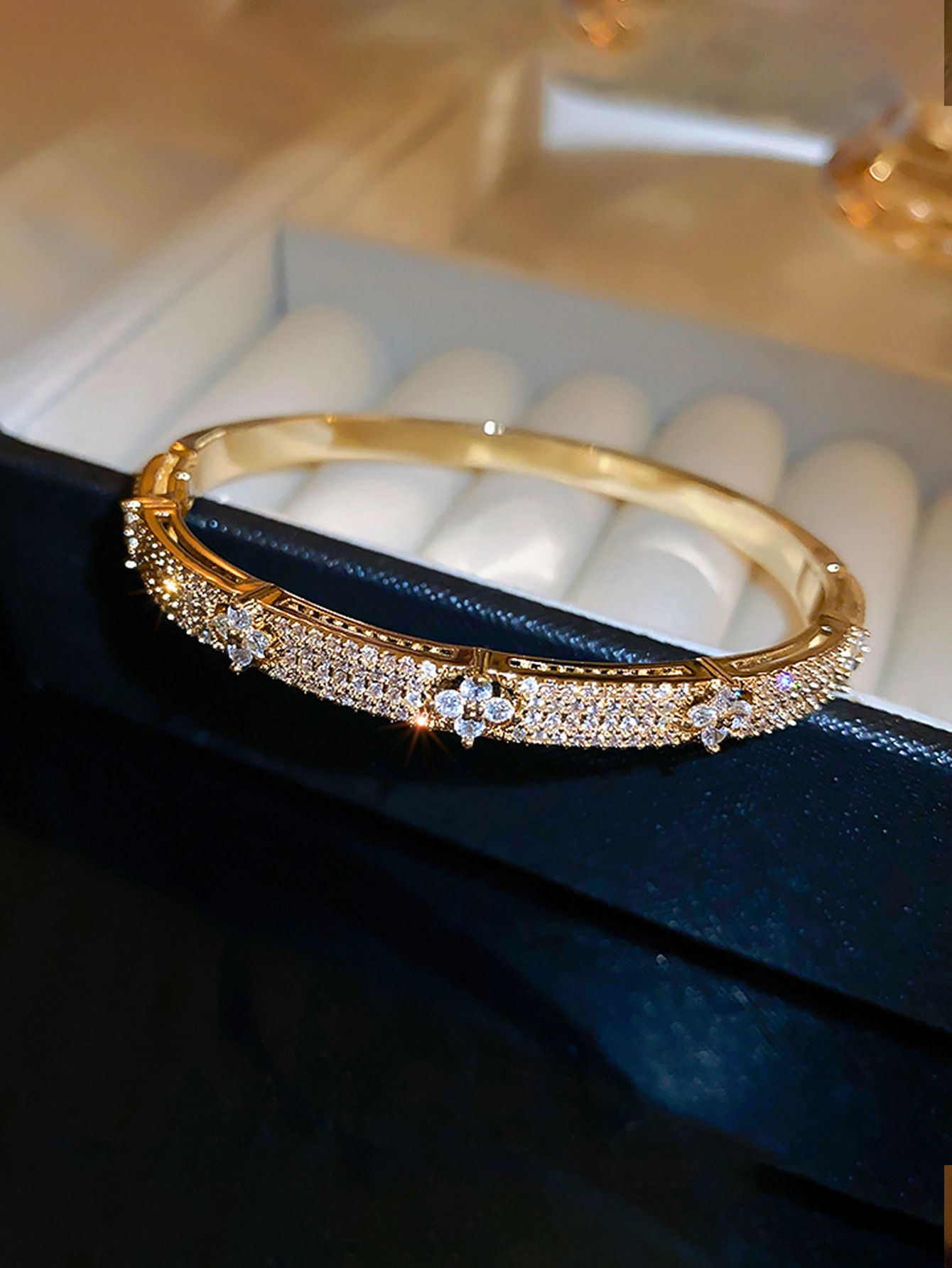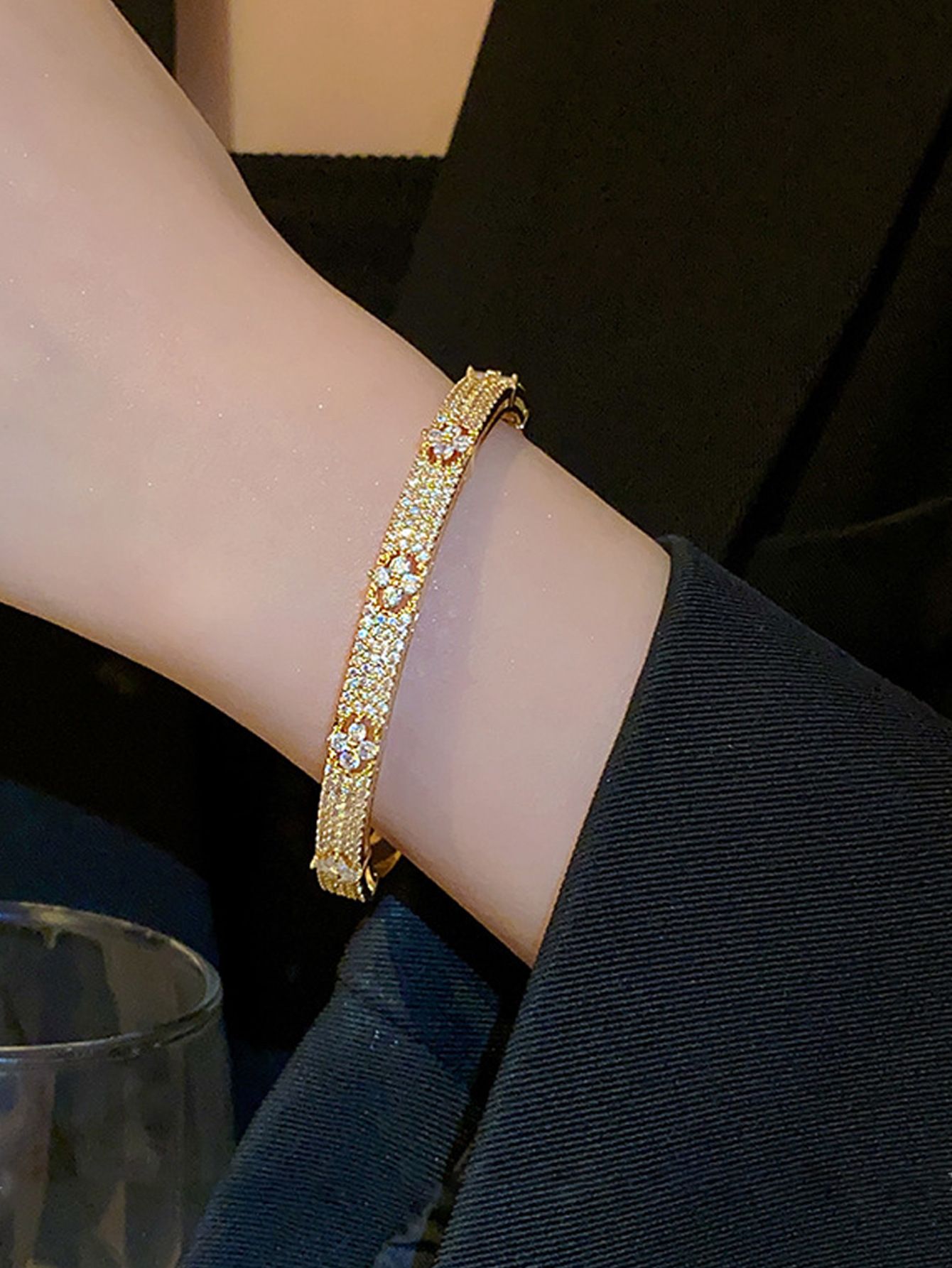 Light luxury fashion trendy personalized micro-inlaid zircon flower full diamond bracelet, niche high-end temperament versatile wristband