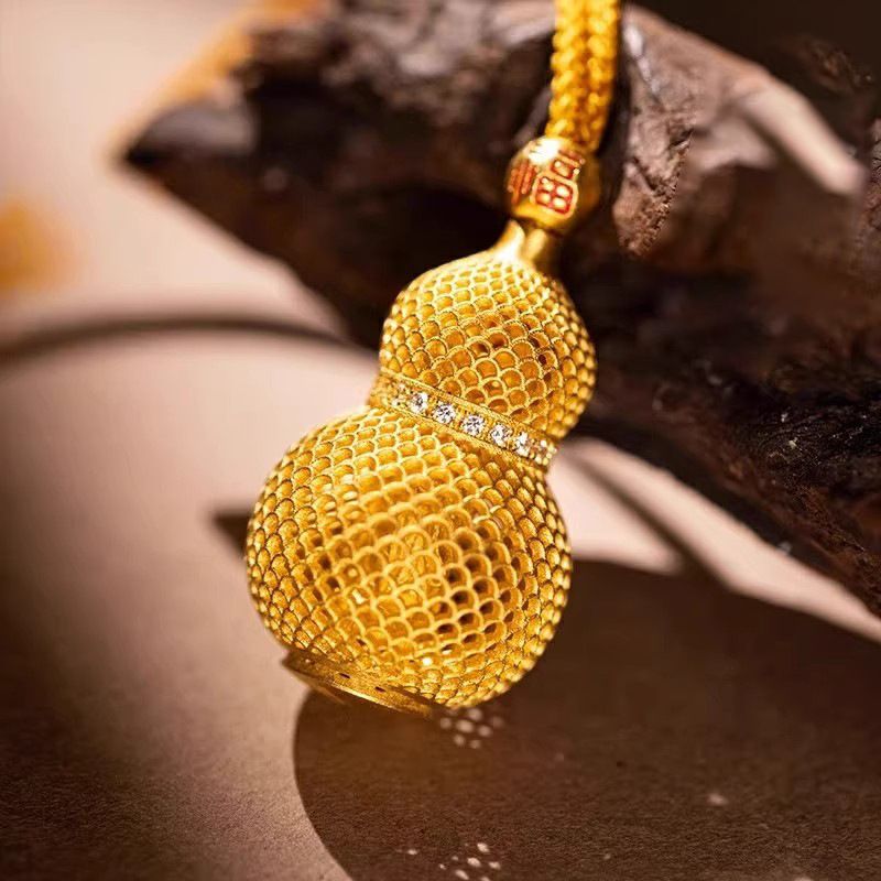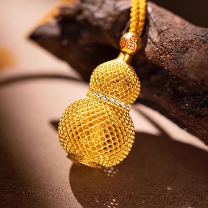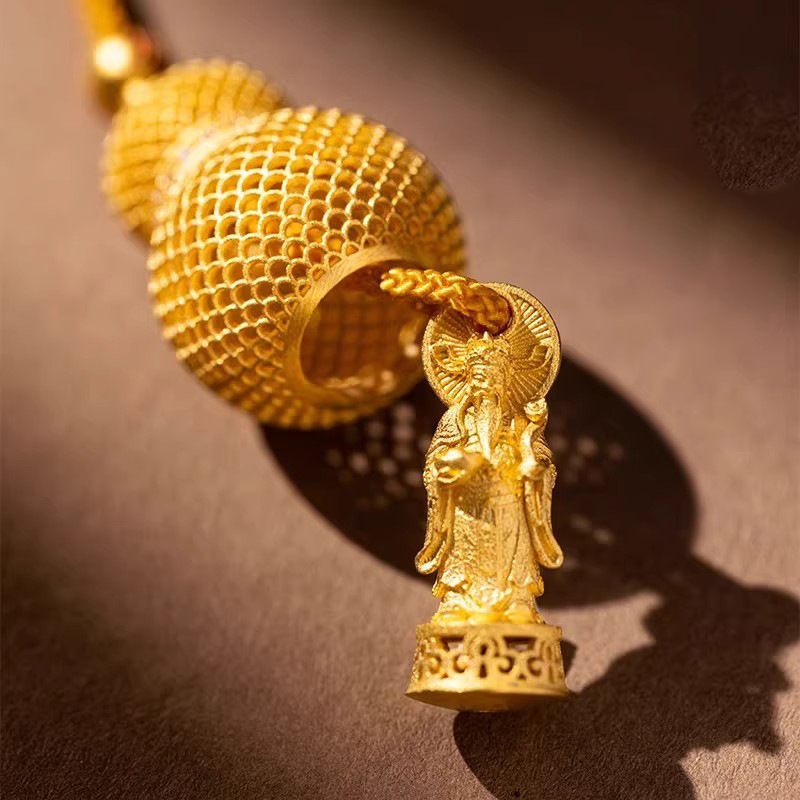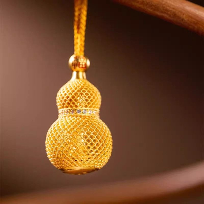 Make a fortune quietly Gold-colored Filigree Gourd Pendant, Bag Hanging, God of Wealth, Chinese Style, Exquisite, Light Luxury, and Niche Necklace