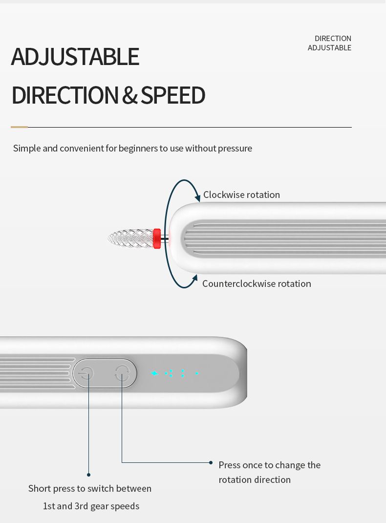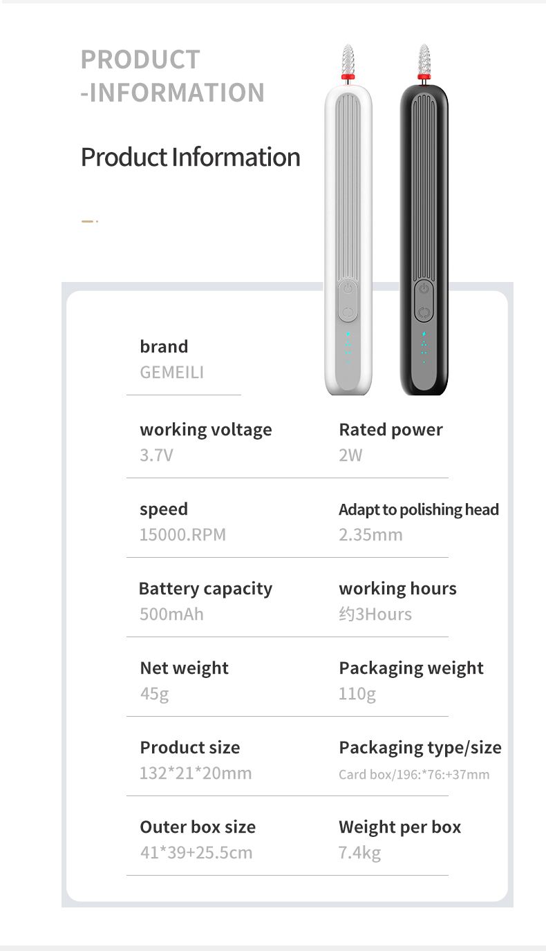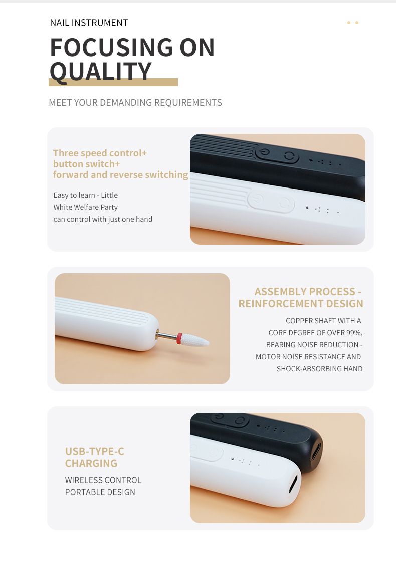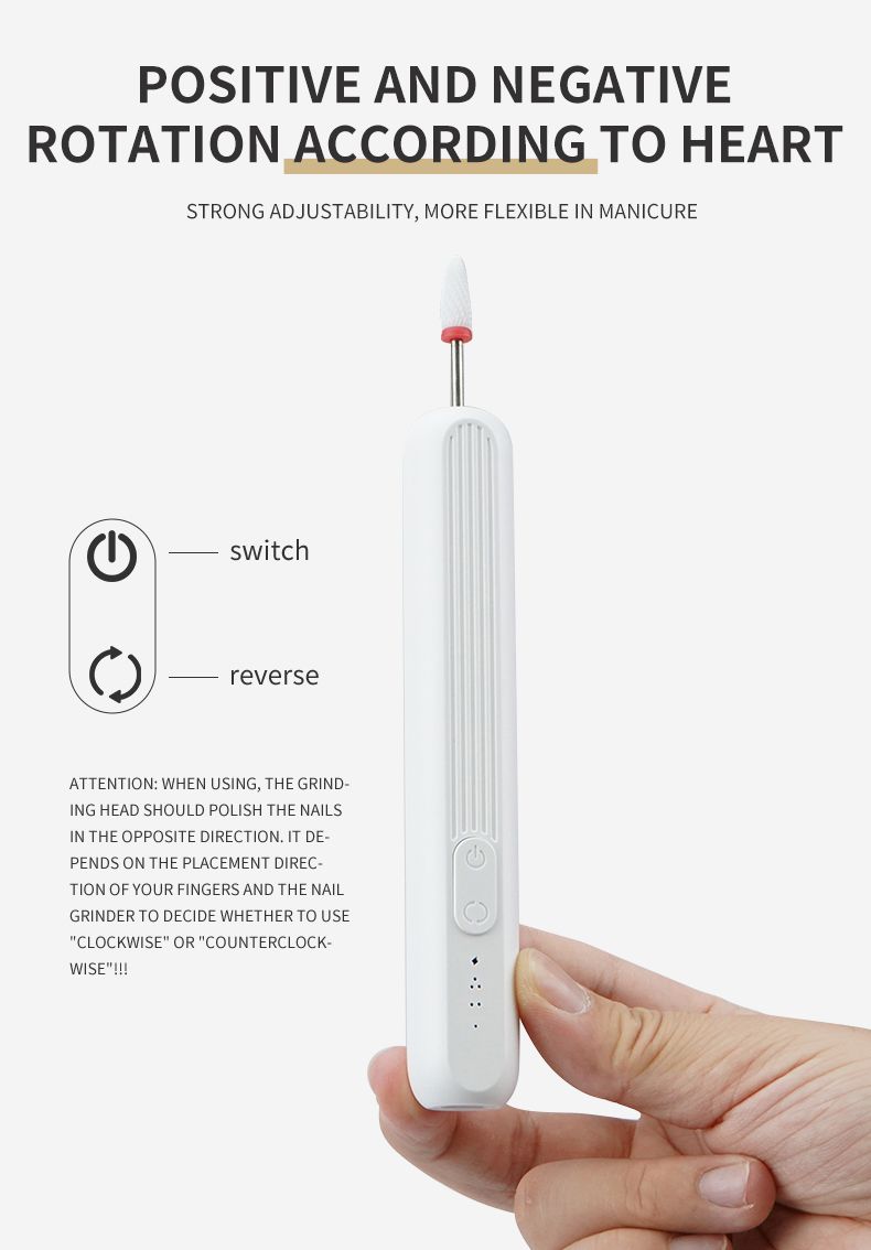 Portable rechargeable nail grinder, pen - shaped electric nail file for manicure