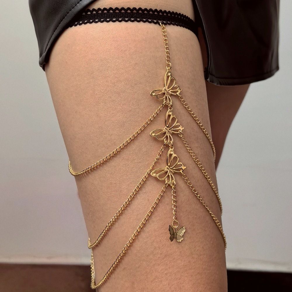Sexy Butterfly Thigh Chain, Elastic Multi-layered Long Butterfly Thigh Chain for Women, Stylish Chain Body Chain