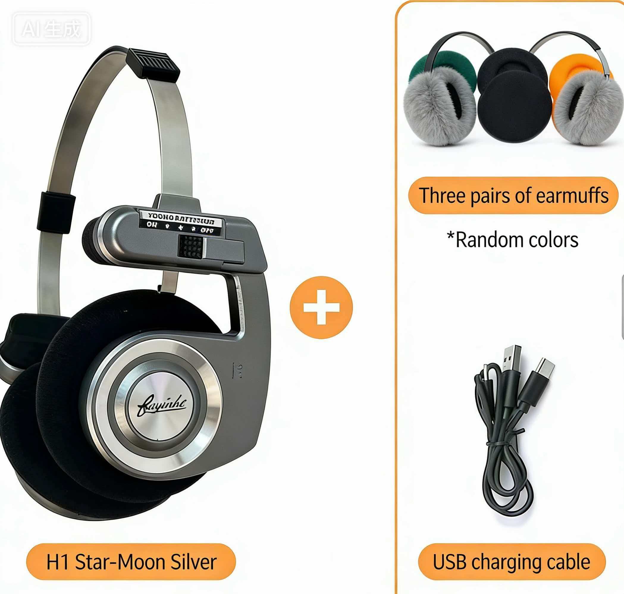 American retro wireless Bluetooth over-ear headphones, internet-famous Plus version, foldable design for girls' photoshoots