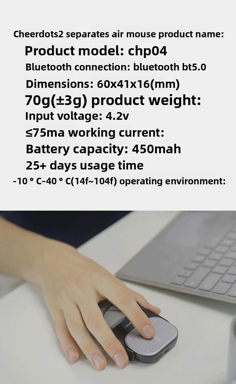 Cheerdots2 Smart AI Magnetic Detachable Air Mouse, Optical Ergonomic Design, Wireless Charging, Dual-Mode Switchable
