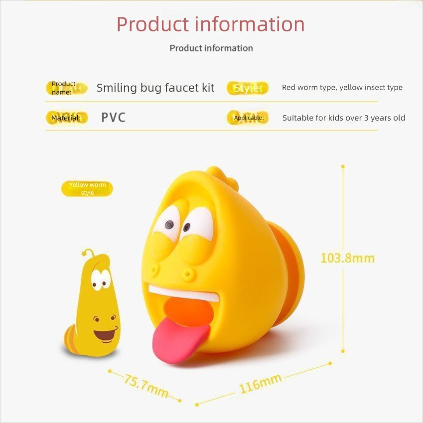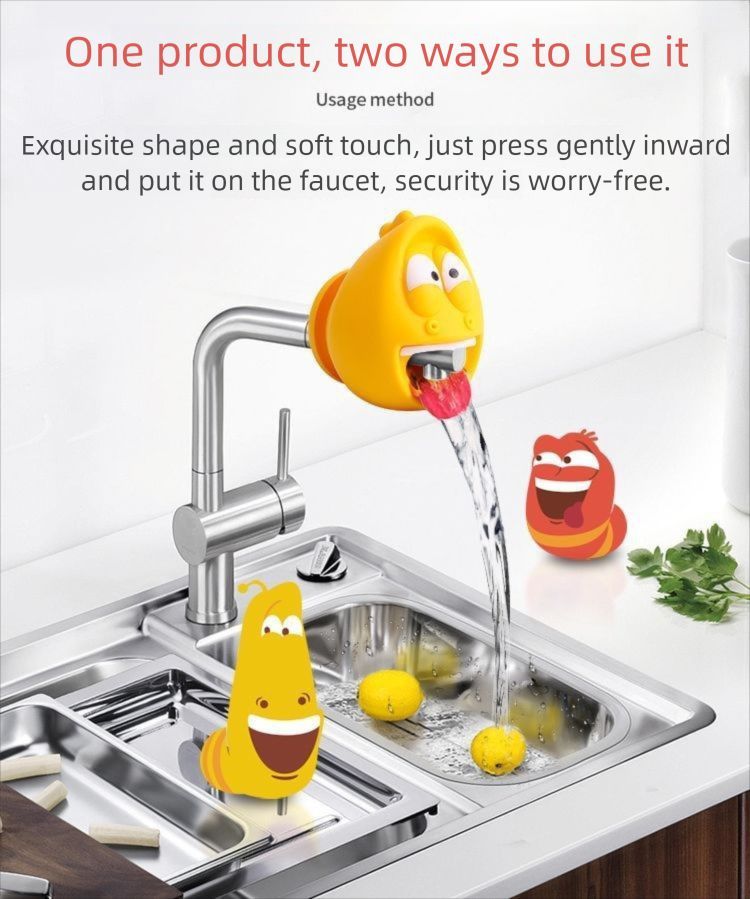 Children's Cartoon Faucet Extender Filter Novelty Shower Tap Water for Bathroom and Kitchen Splash-Proof Larva Design