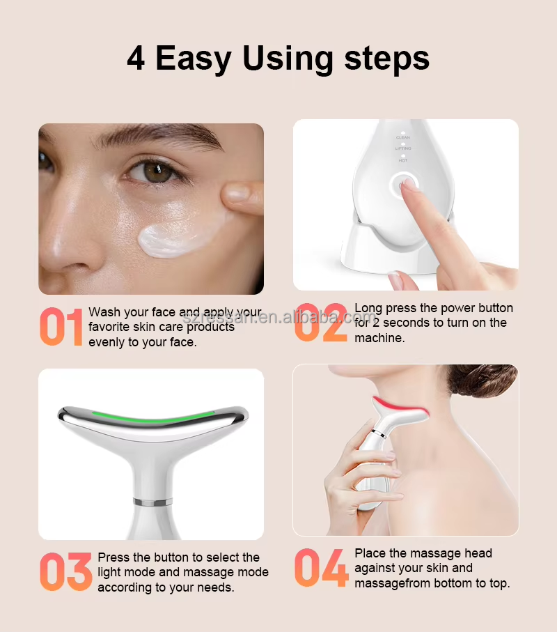 New product launched. Facial firming and lifting, neck lifting beauty device. 7-color LED photon therapy. Facial and neck lifting massager
