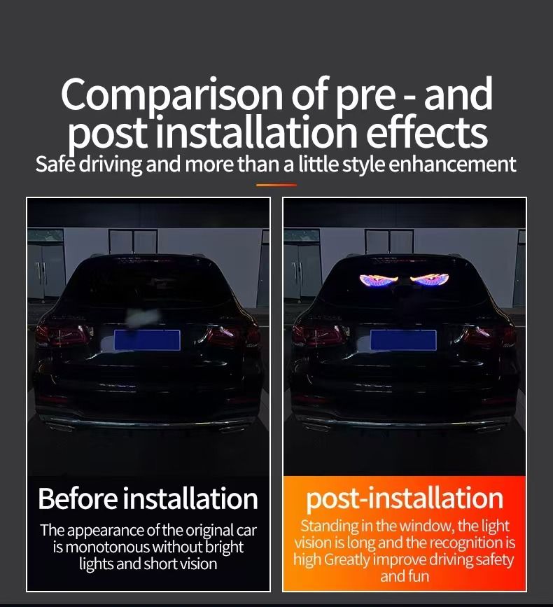 GM Demon Eye LED Light Logo Application Control USB Display, 3-inch Flashing Dynamic Rear Window Screen for Cars