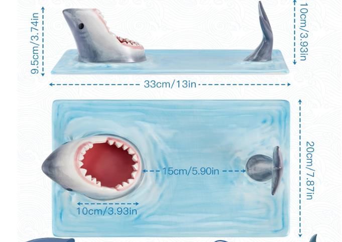 Japanese-style quirky big-mouthed shark plate, cartoon ceramic plate for French fries with dipping sauce, vinegar dish, household plate for dumplings, salmon and sushi