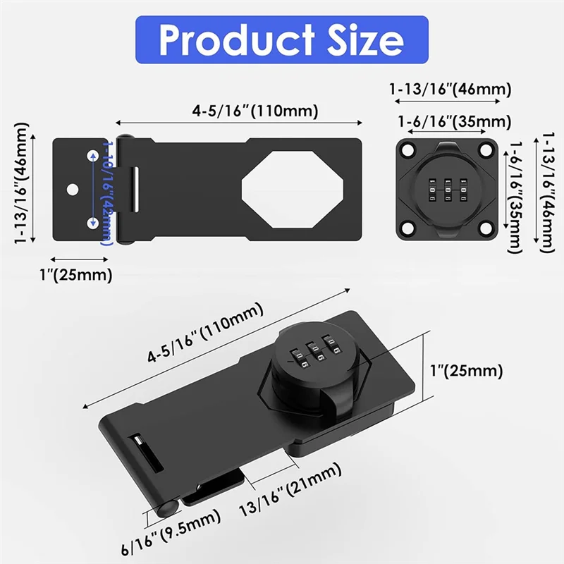 Keyless steel cabinet combination lock, bedroom password lock, modern design, iron core, black surface treatment, easy to install
