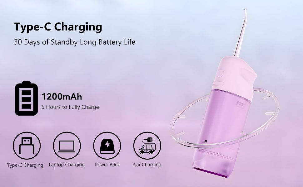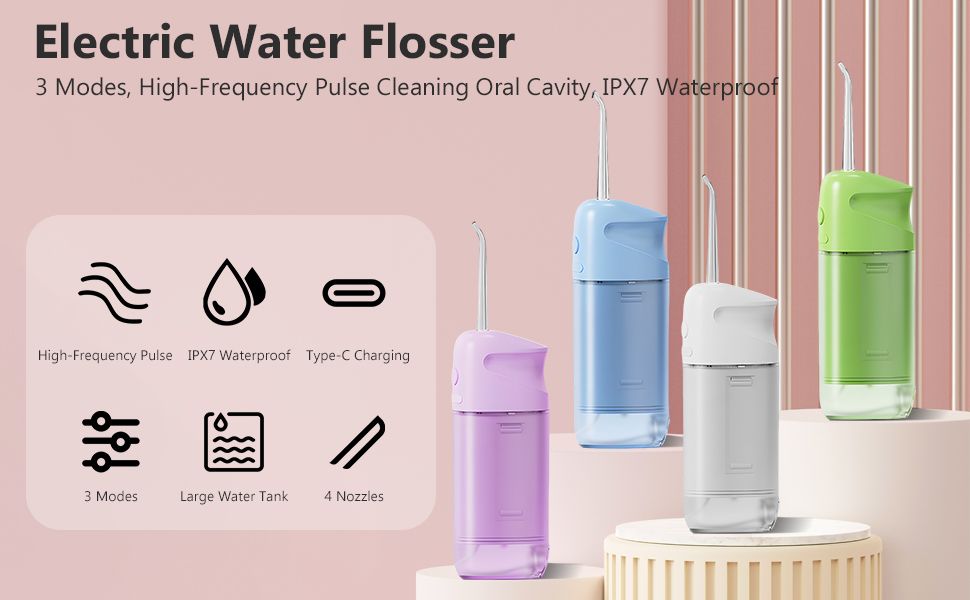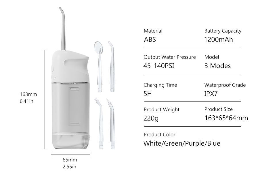 Portable electric oral irrigator, cordless dental flosser, water tooth cleaner for travel and sensitive teeth