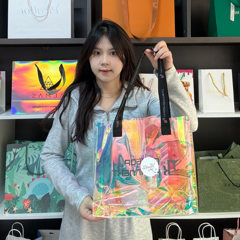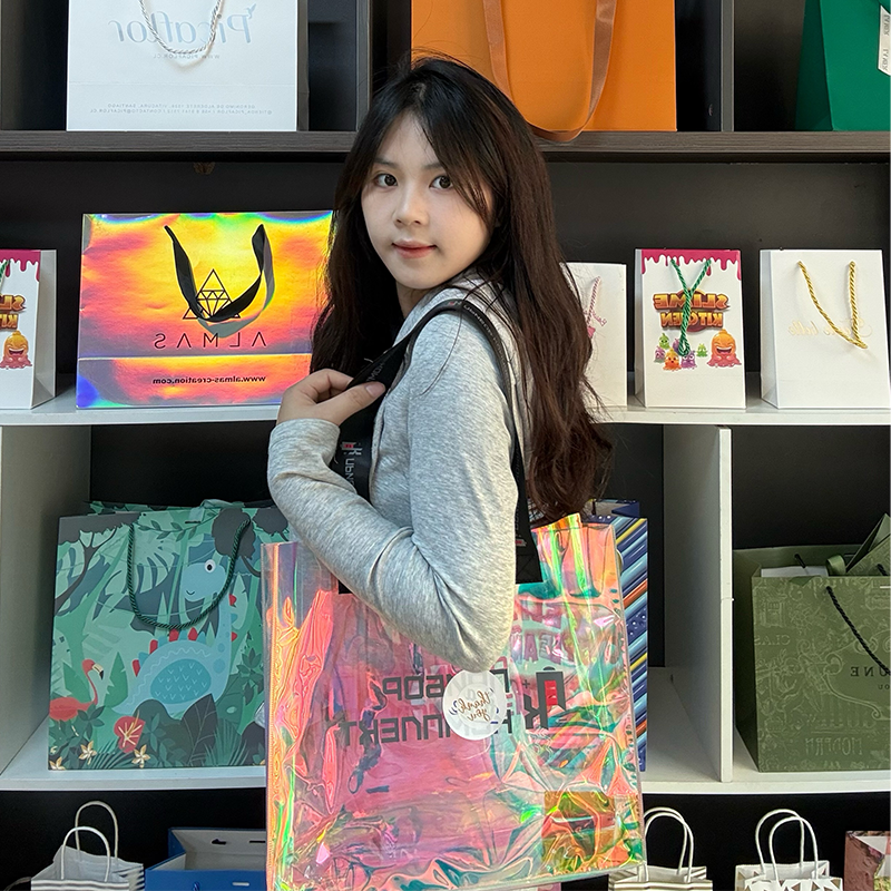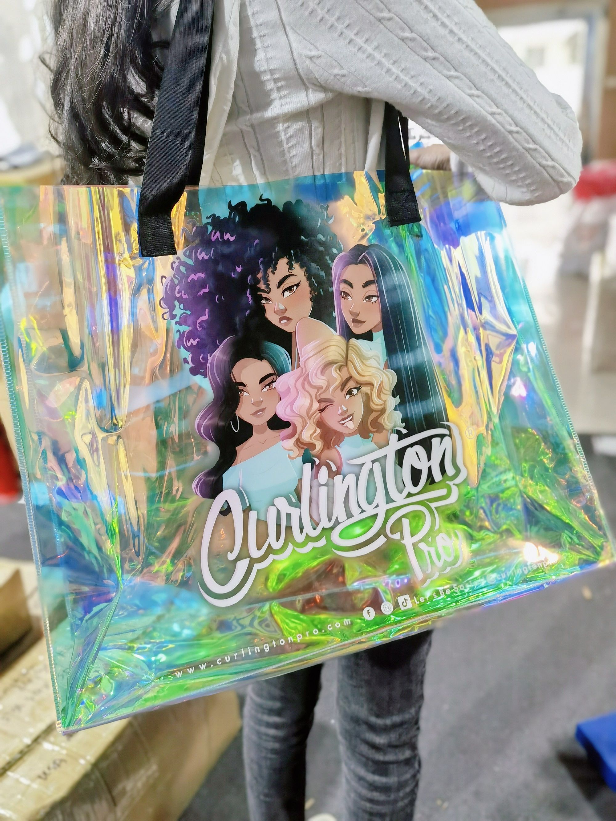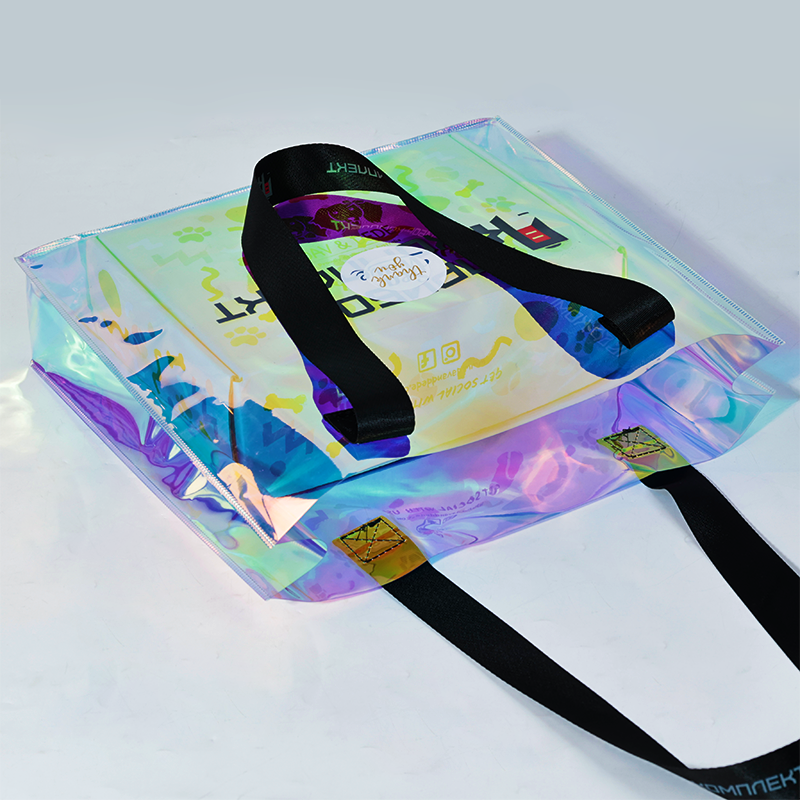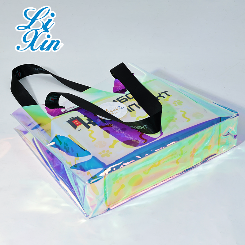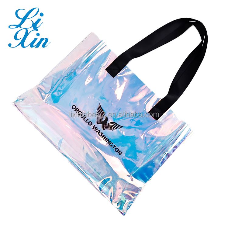 Custom Printed Logo Luxury Trendy Fashionable Pvc Hologram Shoulder Handbag Iridescent Beach Bag Holographic Shopping Bag