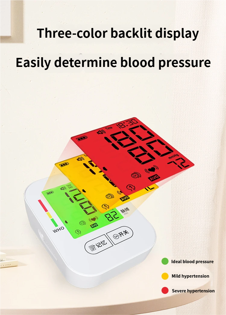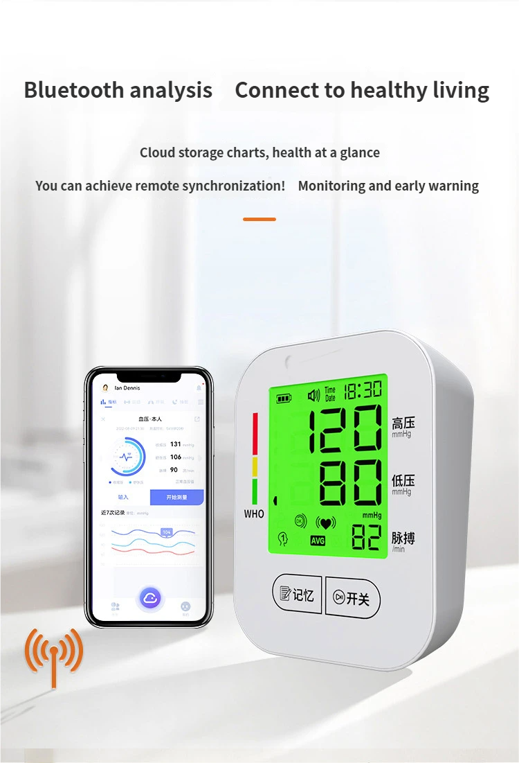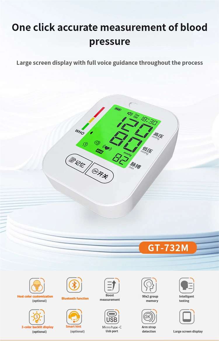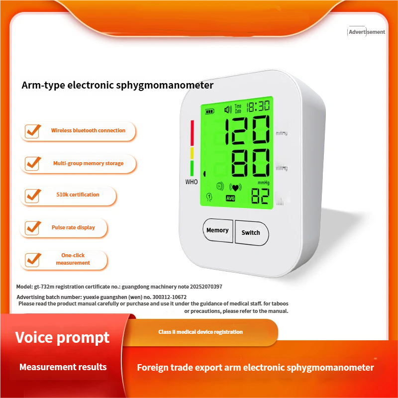 Electronic sphygmomanometer, large - screen backlit display, detachable battery, Class II medical device, home monitor