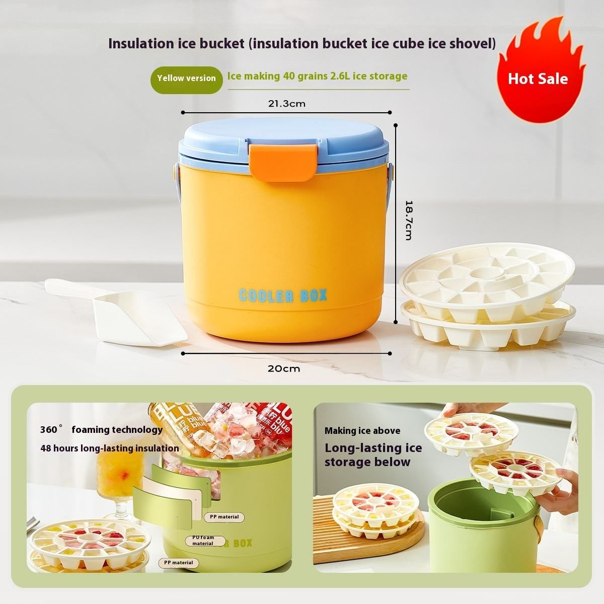 Handheld ice bucket, household ice cube storage box, ice-making mold, outdoor picnic and camping insulation