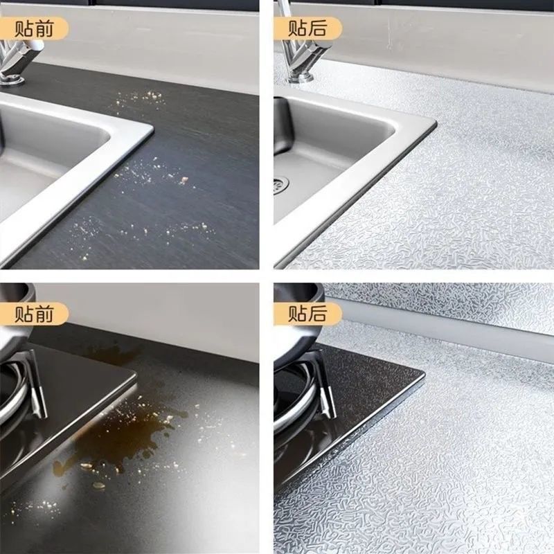 Kitchen oil-proof stickers, fire-resistant and high-temperature resistant, cabinet waterproof and moisture-proof self-adhesive wallpaper, tin foil aluminum