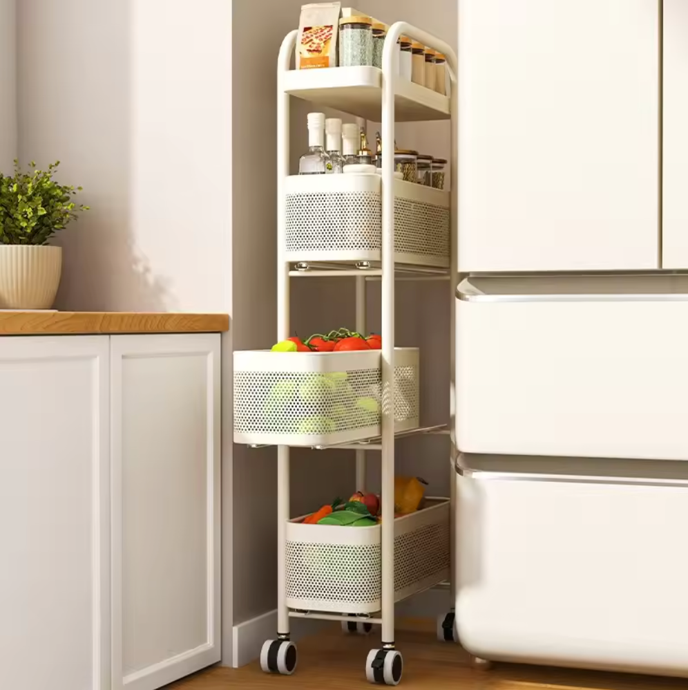 Multi-functional storage cabinet for kitchen gaps between shelves, vegetable basket, narrow bathroom mobile trolley for refrigerator gaps